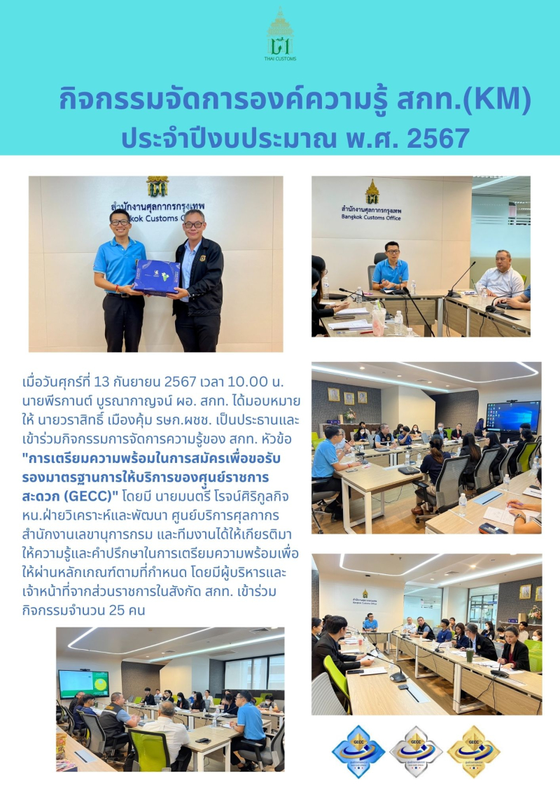 สำนักงานศุลกากรกรกรุงเทพ จัดกิจกรรมจัดการองค์ความรู้ (KM) ประจำปีงบประมาณ พ.ศ. 2567