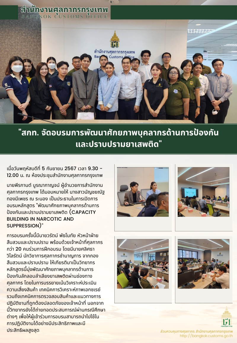 สำนักงานศุลกากรกรุงเทพ จัดอบรมการพัฒนาศักยภาพบุคลากรด้านการป้องกันและปราบปรามยาเสพติด