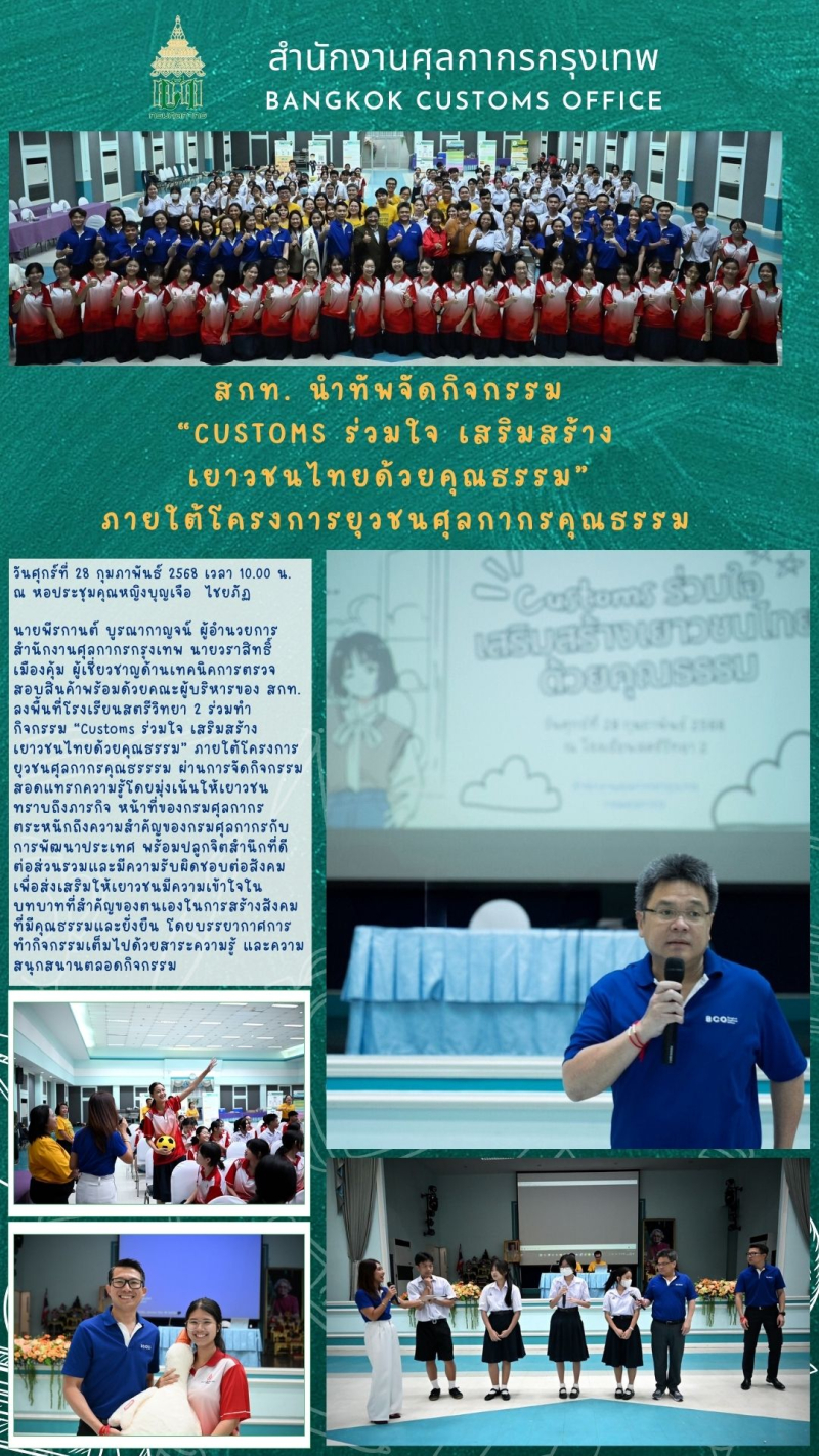 สกท. นำทัพจัดกิจกกรม 'Customs ร่วมใจ เสริมสร้าง เยาวชนไทยด้วยคุณธรรม' ภายใต้โครงการยุวชนศุลกากรคุณธรรม